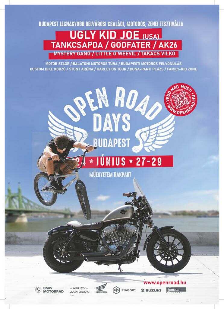 2024. június 27-29. A MOTOROZÁS ÜNNEPE: A főváros egyik ikonikus helyszínére érkezik Budapest legnagyobb belvárosi fesztiválja, az Open Road Days. Az összmotoros rendezvényen minden motormárka és minden motoros klub ott lesz, aki számít. Hangolj a fesztiválra az Open Road Tour-on a barátokkal május 23-26. között, és vedd meg a bérleted most!